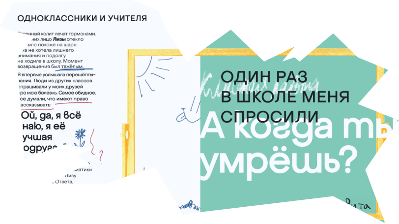 Мы взяли интервью у шести молодых людей с невидимой инвалидностью---. Спросили, как они живут, строят карьеру, какие у них отношения с собой и болезнью. Очень разные личные истории собрали в короткий зин — описали опыт честно и простым языком, добавили дизайн, фотографии и рисунки.
